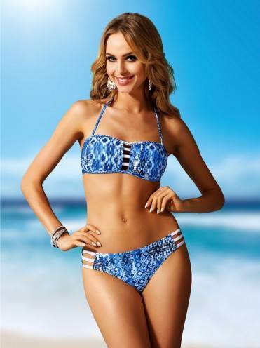 Лиф купального костюма с жесткой формованной чашкой и вкладышем «PUSH-UP». Фиксируется съемной бретелью за шею и застежкой по спине. Чашки задрапированы по боку и соединены по центру между собой контрастными по цвету шнурками.